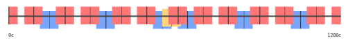 The interval regions surrounding neutral (blue) and mosdiatonic (red/yellow) intervals. Interordinal regions are the "gaps" in this scheme.